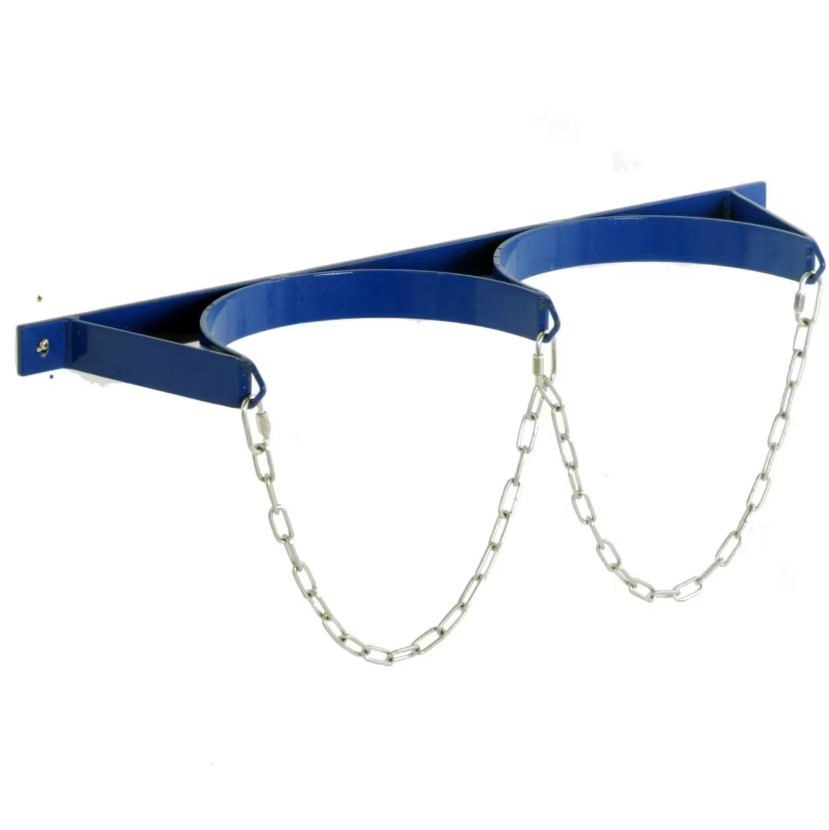 Suitable for storing either 2 or 3 cylinders, our Heavy-Duty Cylinder Wall Racks come supplied with pre-drilled fixing holes (fixings not supplied) and steel link retention chains